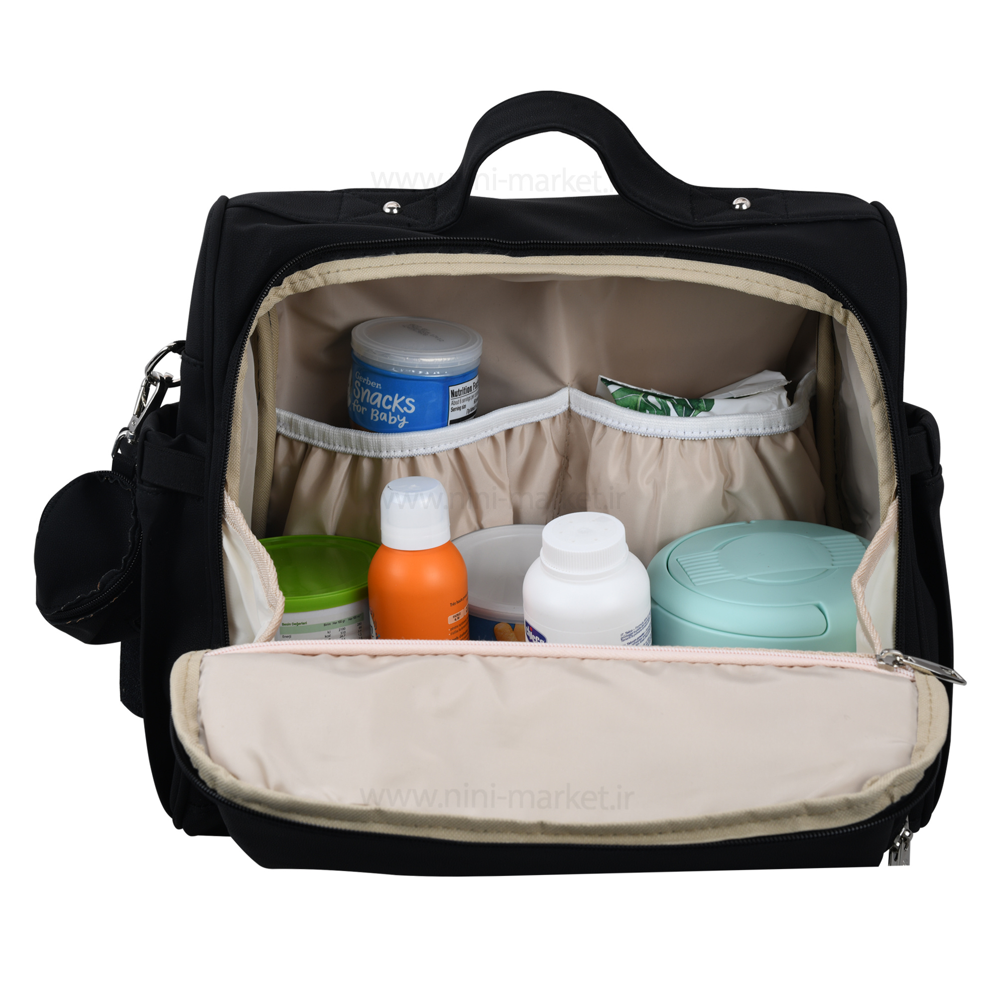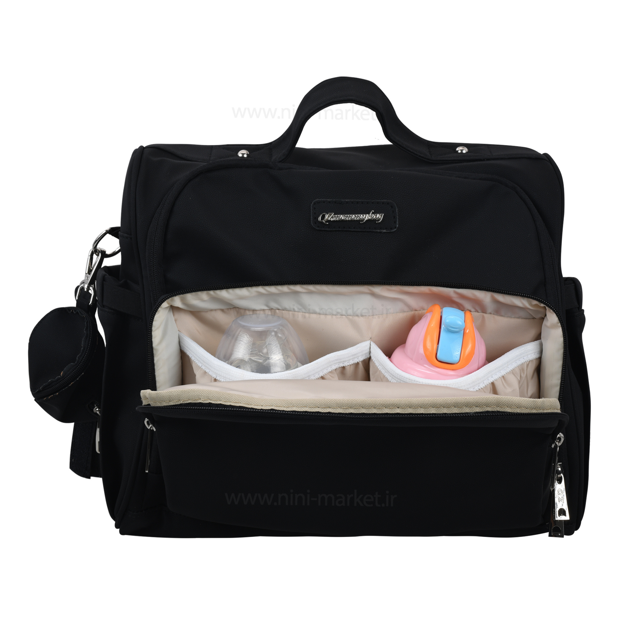 ساک لوازم کوله ای مدل اسپیشال خاویاری رنگ مشکی QZ با امکان استفاده به هر سه حالت دستی، رودوشی و کولهای را دارد. جیب اصلی این کولهپشتی لوازم نوزاد طرحدار از قسمت جلوباز میشود و دسترسی خوبی به وسایل داخلی به شما میدهد. شما میتوانید کیف بچه را به حالت چمدانی قرار داده و وسایل آن را مدیریت کنید. برای استفاده بهصورت کولهای، بندهای کولهپشتی در جیب قسمت پشتی قرار دارند. این بندها ظاهری زیبا و شکیل به کار داده و نیازی به همراه بردن این بندها بهصورت مجزا ندارید. قسمت داخلی ساک لوازم نوزاد دارای آستر ضد آب است و برای آسانی در جادادن لباسهای نمدار نوزاد این قابلیت به کار میآید. شستوشو ساک لوازم نوزاد هم بهصورت دستی و هم در ماشین لباسشویی امکانپذیر است. این کوله نوزادی دارای محفظه گرم نگهدارنده شیشه شیر، جیب مخصوص دستمال مرطوب، جیب مخصوص فلاسک، بند رودوشی و زیرانداز تعویض پوشک به ابعاد حدودی ۳۵*۴۵ است.همچنین برای راحتی در هنگام بیرون رفتن با کالسکه، بند آویز کالسکه در میان وسایل همراه قرار دارد. در ضمن این ساک لوازم به همراه یک عدد کولهپشتی نوزادی تقدیم شما میشود.