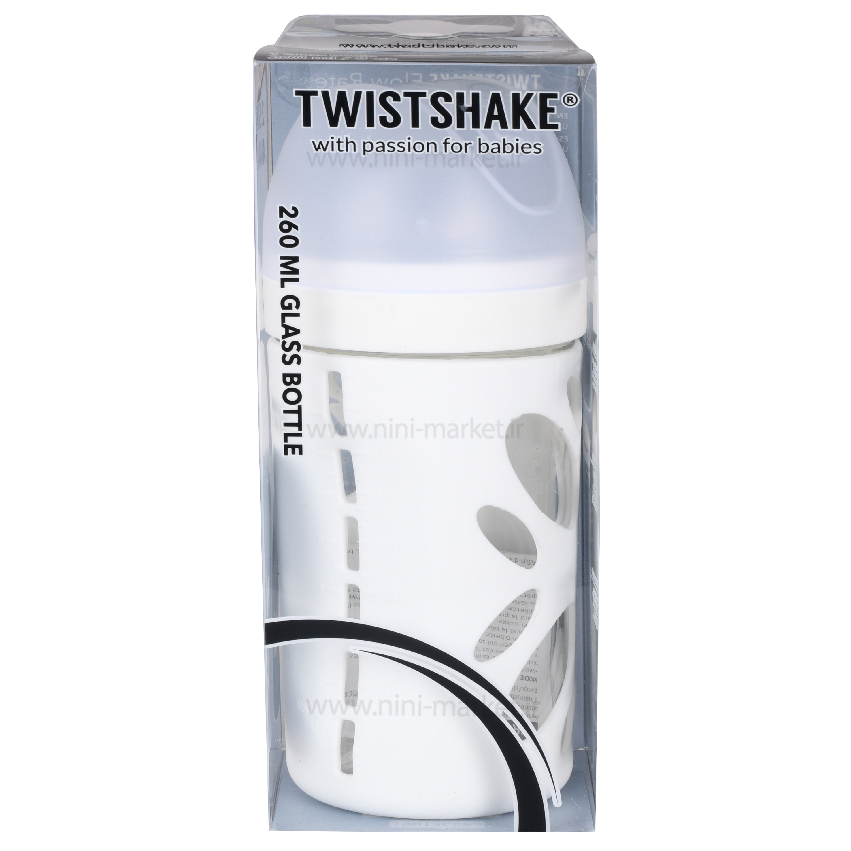 شیشه شیر 260 میل پیرکس کاور دار رنگ سفید Twistshake