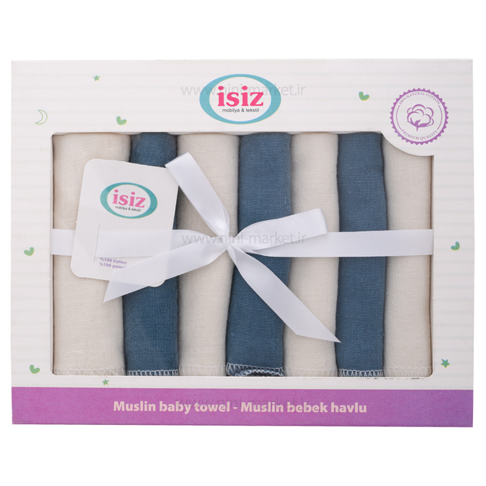 دستمال دست و صورت موسلين دو رو 7 عددي رنگ سرمه اي ايسيز Isiz