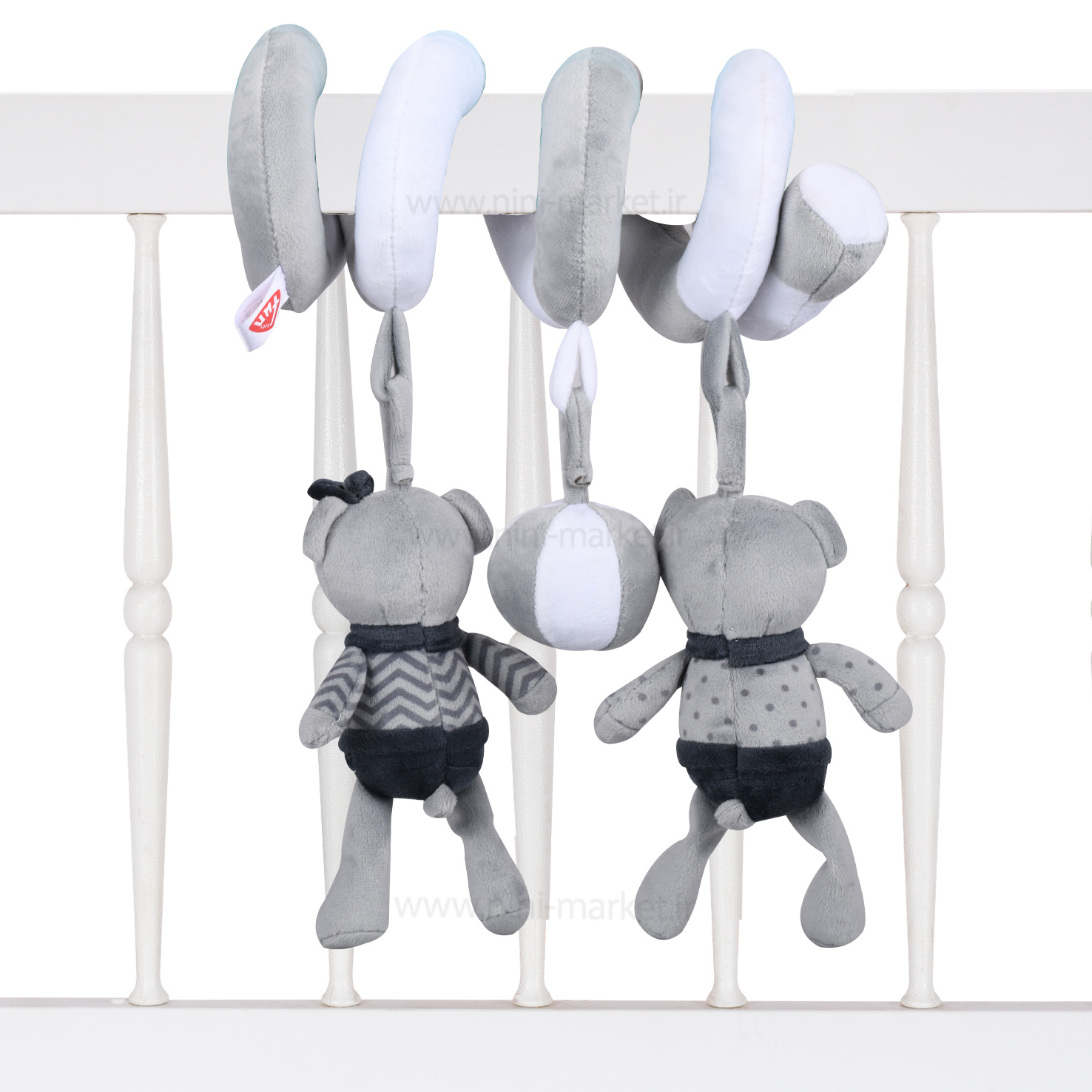 آویز مارپیچ طرح خرس از جمله اسباب‌بازی‌هایی است که از نوزادی مورداستفاده قرار می‌گیردو همچنین موارد استفاده متعددی دارد که می‌توان از آن در گهواره نوزاد، در کریر، کالسکه یا حتی ماشین استفاده کرد. ساختار آن به‌گونه‌ای است که به‌دور هر چیزی می‌پیچد و در مقابل کودک باعث سرگرمی او می‌شود. آویزهای مارپیچ علاوه بر جنبه سرگرمی جنبه آموزشی نیز دارند. کودک شما در تلاش برای فشردن، تکان دادن و به دست گرفتن عروسک های این آویز، سرگرم خواهد شد   و به قدرت شناخت رنگ ها کمک می کند جنس این محصول مخمل نرم و لطیف می باشد و مواد تشکیل دهنده آن عاری از مواد شیمیایی می باشد.