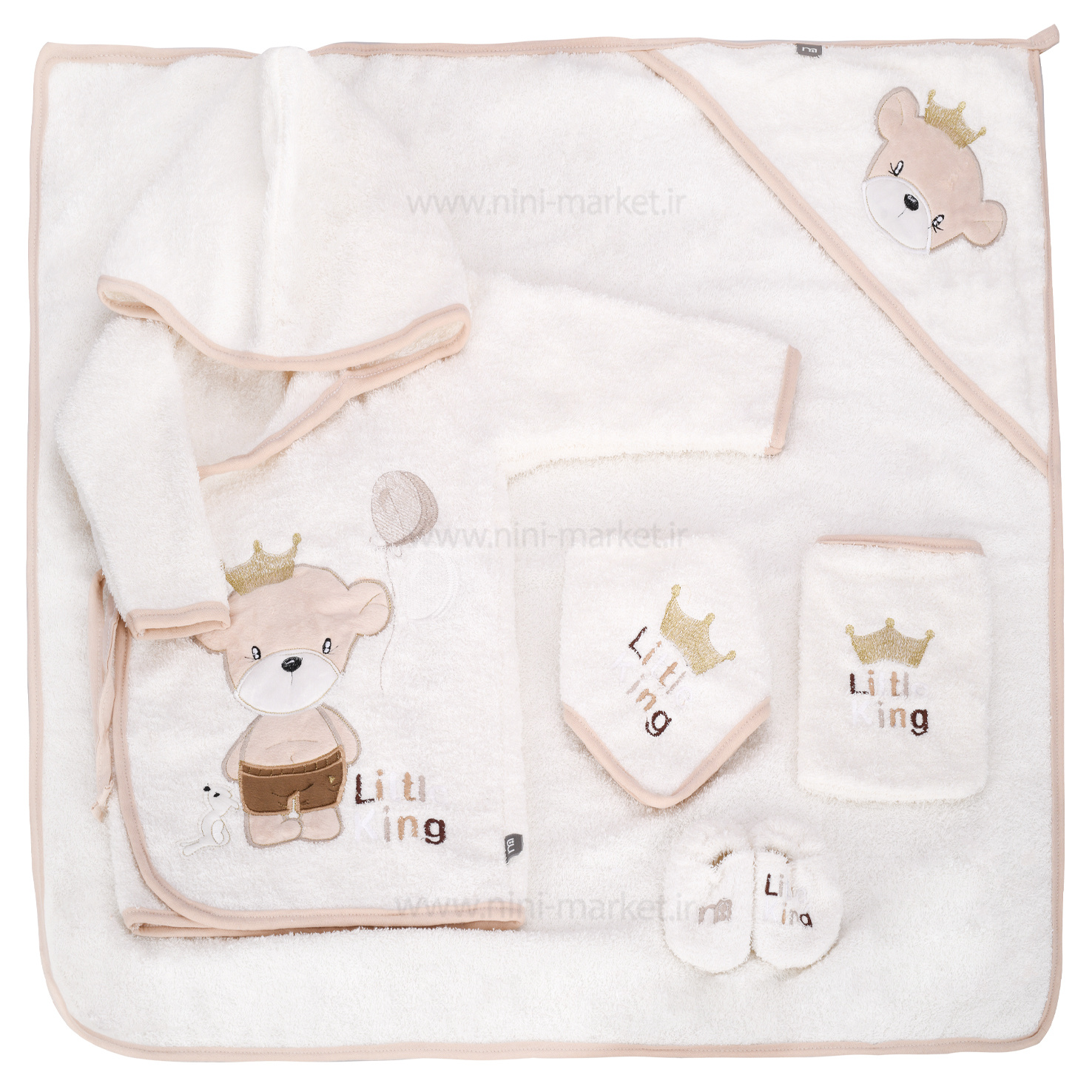 سرویس حوله 5 تیکه طرح خرس و تاج کرمی مادرکر