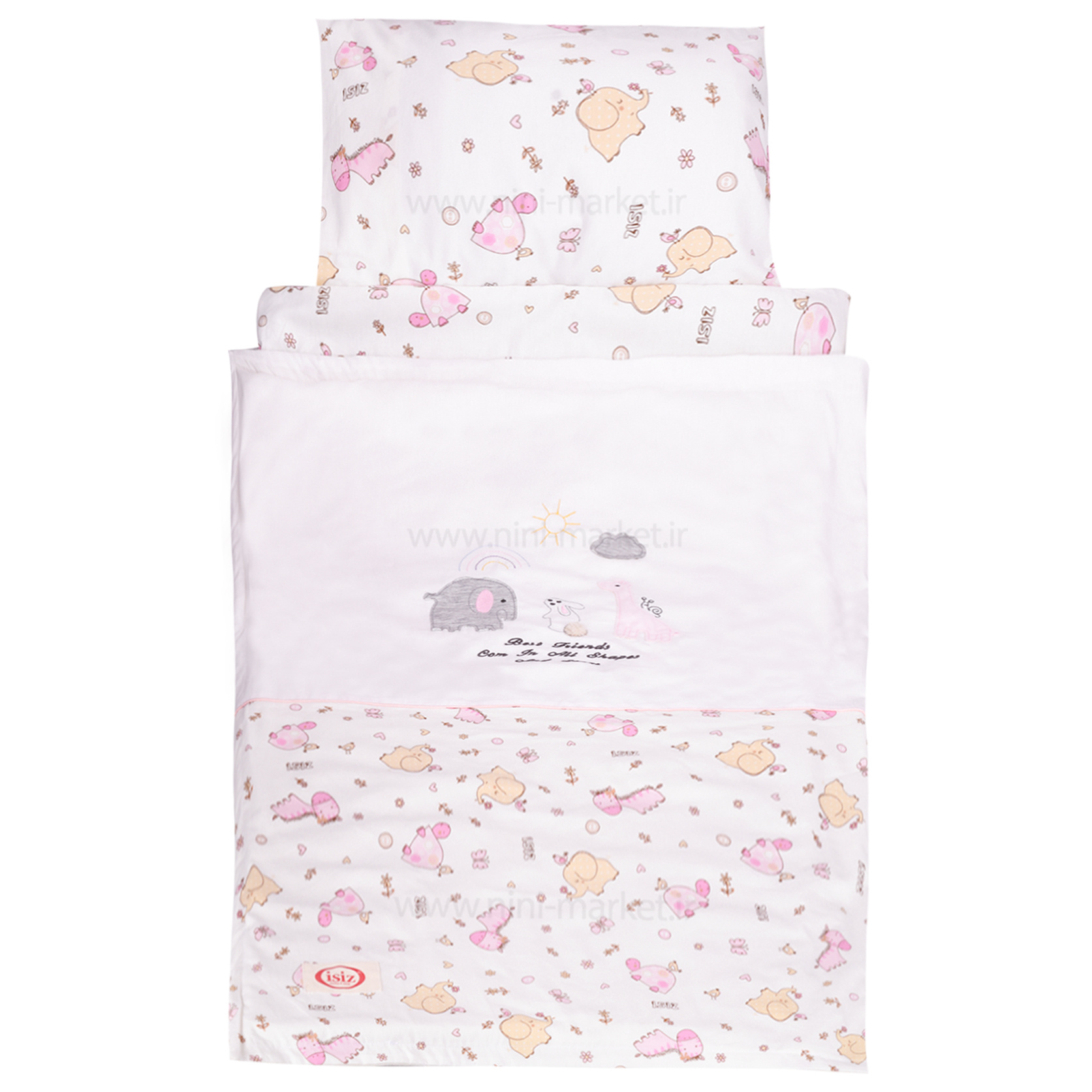 سرویس خواب مسافرتی2 کاره طرح حیوانات رنگ صورتی ایسیز isiz