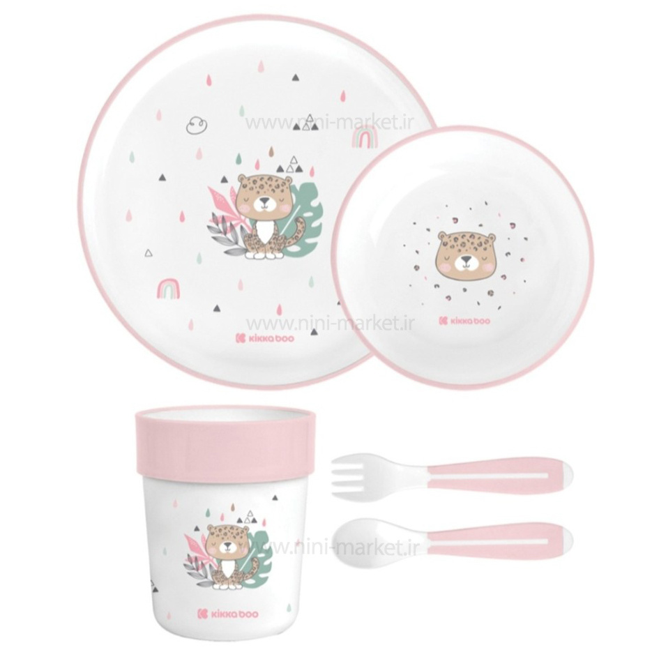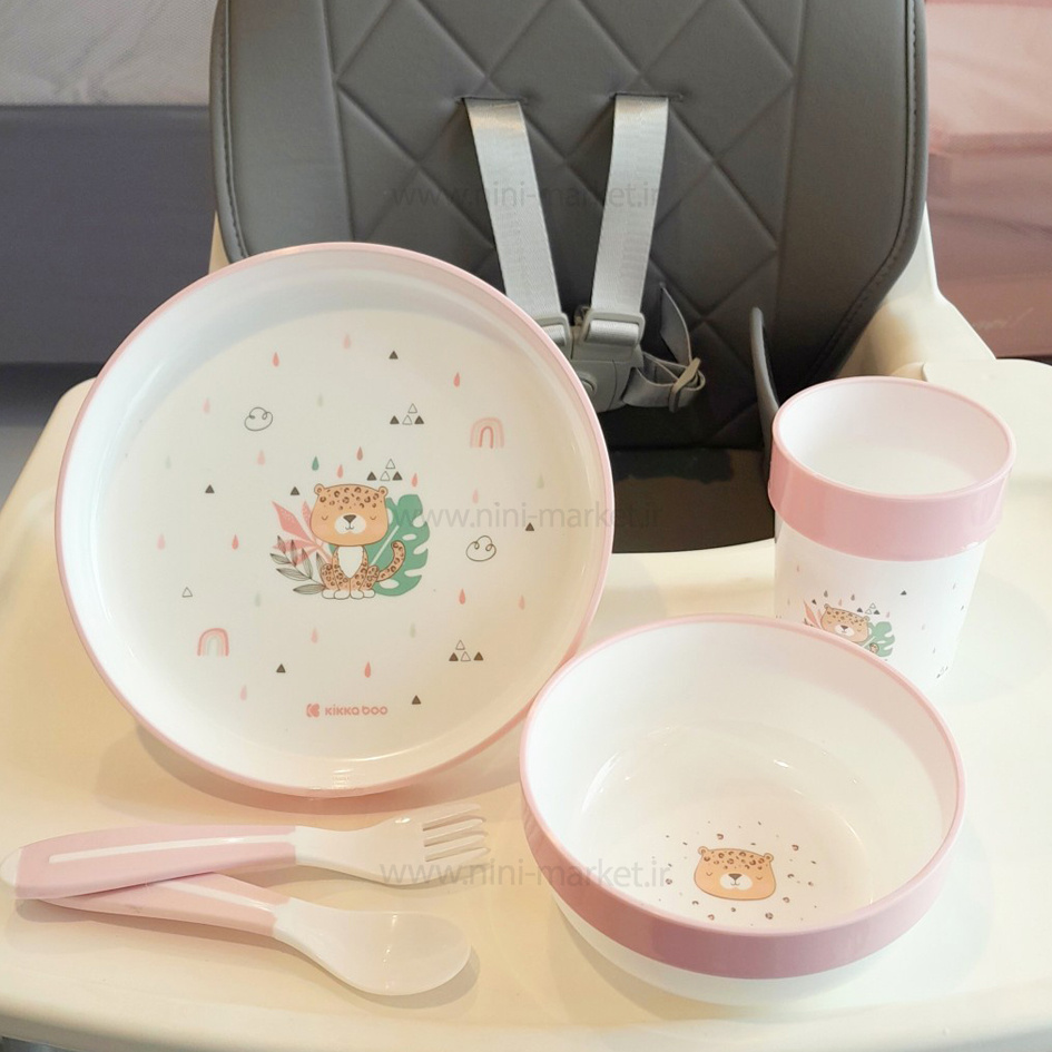 ست 5 تیکه ملامین طرح پلنگ برند Kikka boo یک ست زیبا و دوست داشتنی برای کودکان دلبندتان است .طراحی جذاب این ظروف با طرح پلنگ که کودک را به خوردن غذا ترغیب کرده و تمایل کودک به غذا را بیشتر می کند. از طرفی جدا سازی ظروف مورد استفاده کودک از دیگر اعضای خانواده یک امر ضروری می باشد. این ست غذا خوری کودک شامل : قاشق ، چنگال ، لیوان و یک بشقاب برای خوردن انواع غذا و خوراکیها می باشد.