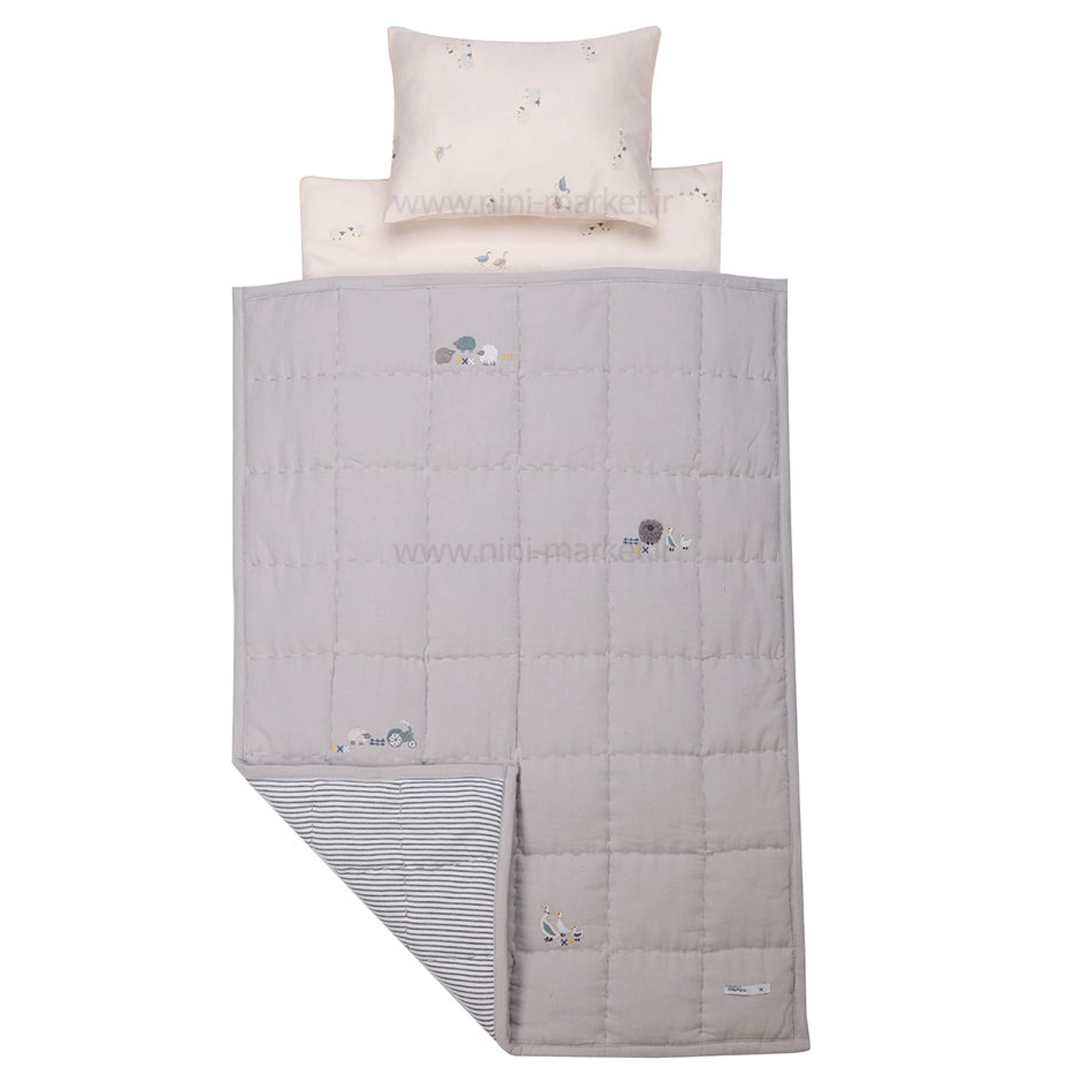Isis three-piece travel bedding set, duck design, muslin, gray