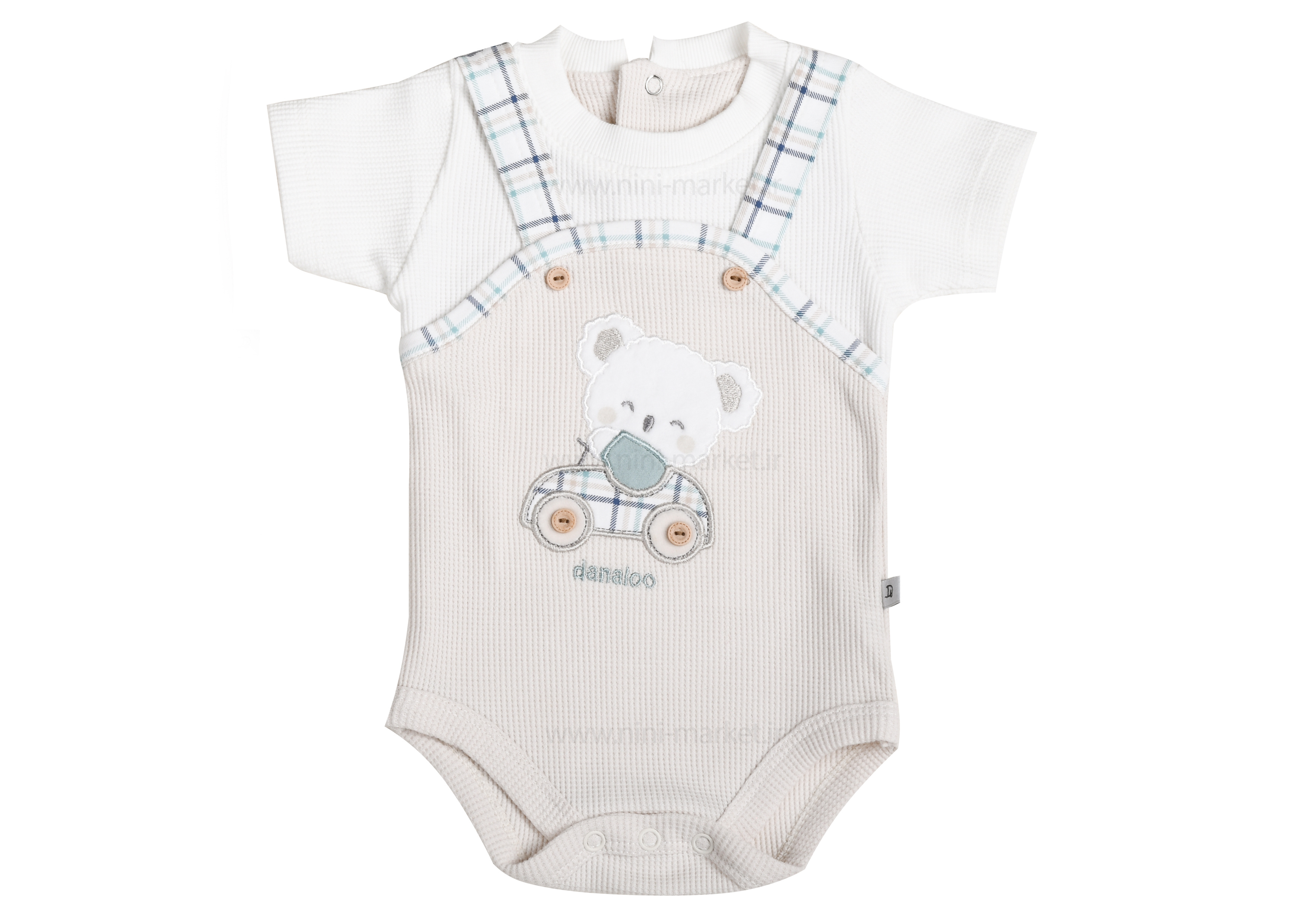 این مجموعه از برند دانالو دارای لباسهای چند تکه میباشد که جنس آنها از سوپر نخ بوده و در دوختن این لباسها از الیافهای طبیعی، رنگ ثابت و بسیار مرغوب استفاده شده است. زیر دکمه آستین کوتاه طرح کوالا دانالو با طراحی زیبا و دوختی ظریف گزینه مناسبی برای فرزند دلبند شماست. روی سینه این لباس طرح یک کولای بهصورت تکدوزی و گلدوزی درآمد است. سه دکمه زیر لباس تعبیه شده است که استفاده از آن را برای مادران آسان کرده است.