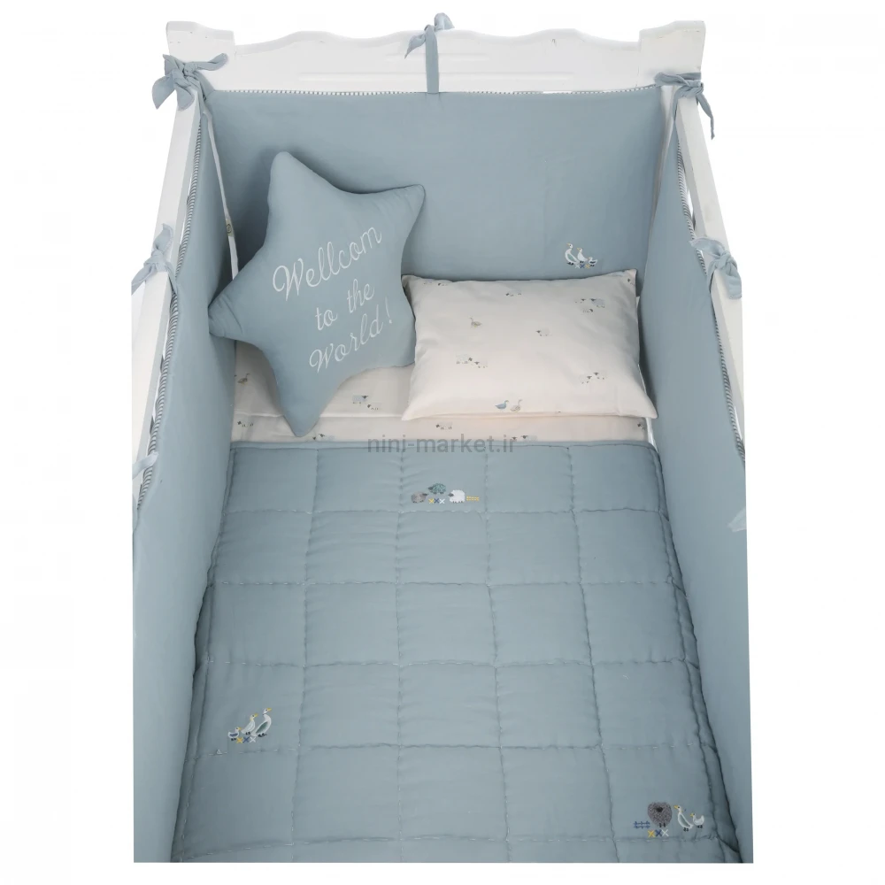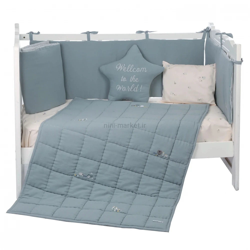 خرید ست روتختي 8 تيکه طرح مرغابي پارچه موسلين رنگ کله غازي ايسيز Isiz