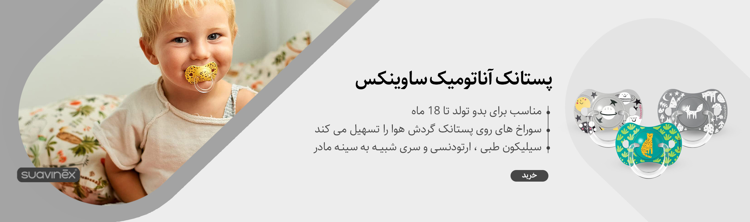 پستانک تک عددي طرح پلنگ 18 - 6 ماه ارتودنسي سفید سواوینکس Suavinex (بدون جعبه)