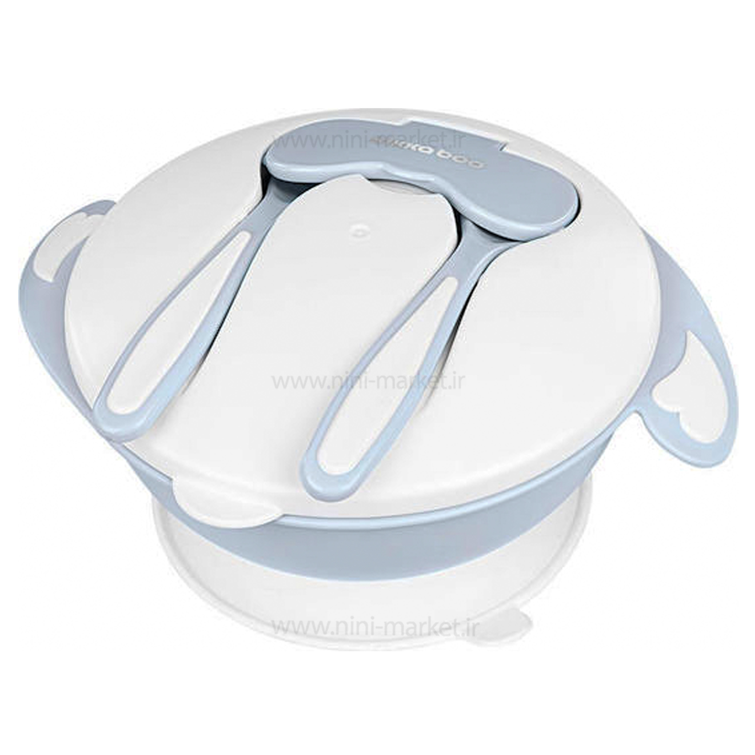 خرید ظرف غذا چسبان و قاشق کیکابو Kikkaboo رنگ آبی
