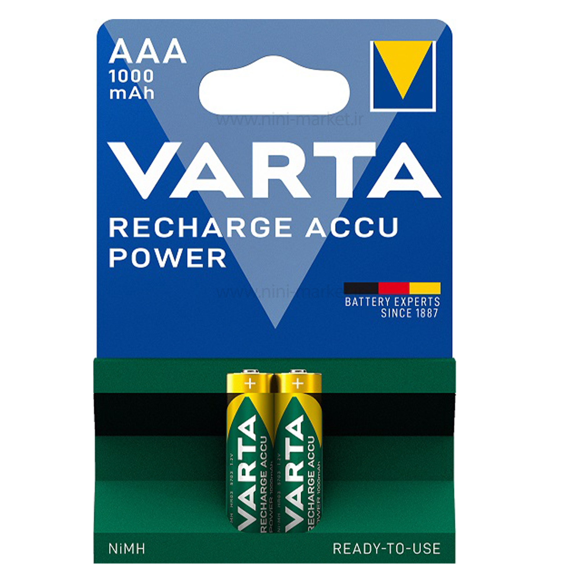 باتري نيم قلمي شارژي سبز دو عددي 1000 آمپر varta از سری باتریهای قابل شارژ شرکت باتری سازی وارتا (Varta) است که در بسته بندی 2 عددی عرضه میشود. این باتری شارژی توسط کشور آلمان تولید و ساخته شده است. این مدل از باتریهای وارتا مناسب دستگاههای استاندارد از جمله: دوربین دیجیتال، موزیک پلیر، چراغ قوه LED و... طراحی شدهاند. هر یک از باتریهای درون این پک میتوانند ولتاژ 1.2ولتی تولید کنند و پس از اتمام ذخیره انرژی امکان شارژ مجدد آنها وجود دارد. برای شارژ باتریها میتوانید از انواع شارژرها و دستگاههای مرتبط استفاده کنید. گفتنی است، میزان ظرفیت باتری شارژی در این مدل 1000 میلیآمپر ساعت است.