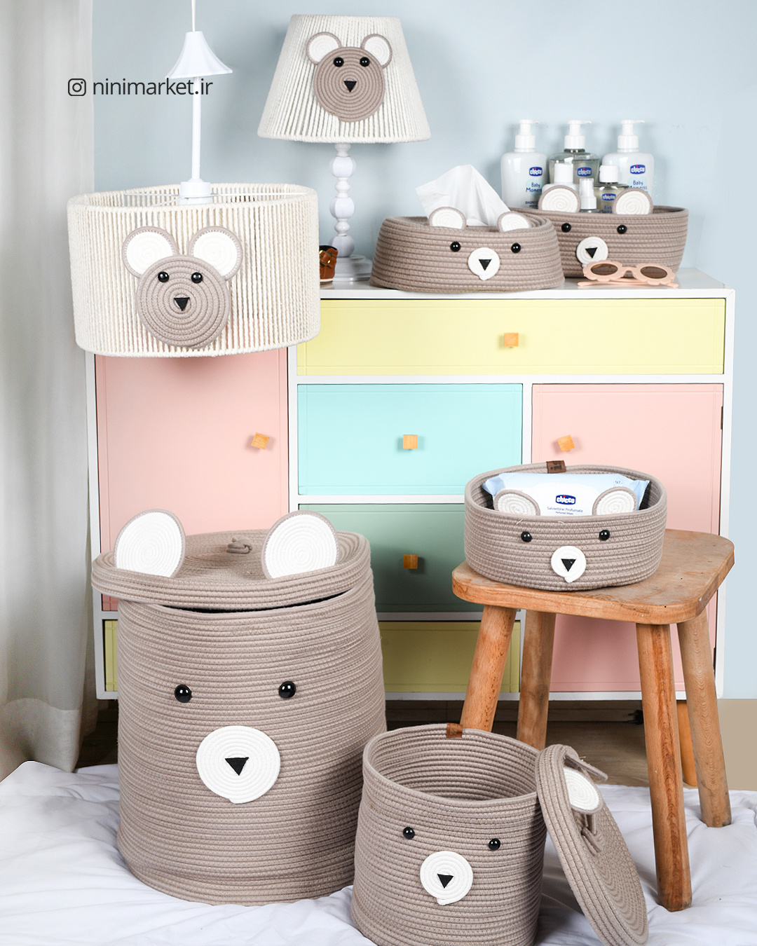 نوزادان و کودکان به لوازم زیادی نیاز دارند که اغلب آن‌ها دارای سایز و ابعاد کوچکی هستند.یکی از دغدغه‌های اصلی والدین هنگام مراقبت از کودک، گم‌شدن لوازم مختلف می‌باشد.به همین دلیل باید آن‌ها را در جایگاهی قرار دهید که در صورت لزوم در دسترس باشند.به کمک سبد اکسسوری می‌توانید لوازم کوچک و دیگر لوازم موردنیاز کودک را درون آن قرار دهید تا همیشه در دسترس شما باشند.سبداکسسوری گرد طرح خرس isiz تمامی نیاز شما را به‌راحتی برطرف می‌سازد.جنس محصول فوق کنفی می‌باشد که وزن سبکی دارد و شما می‌توانید به‌راحتی آن را روی میز قرار داده و لوازم فرزندتان را درون آن بگذارید.طرح سبدهای Isiz به شکل خرس می‌باشد که رنگ فوق‌العاده زیبایی دارد.همچنین شما می‌توانید این سبدها را با دیگر لوازم این برند مانند: لوستر، آباژور و … به‌راحتی ست کنید.به این صورت اتاق فرزند شما جلوه بسیار زیبایی به خود می‌گیرد.