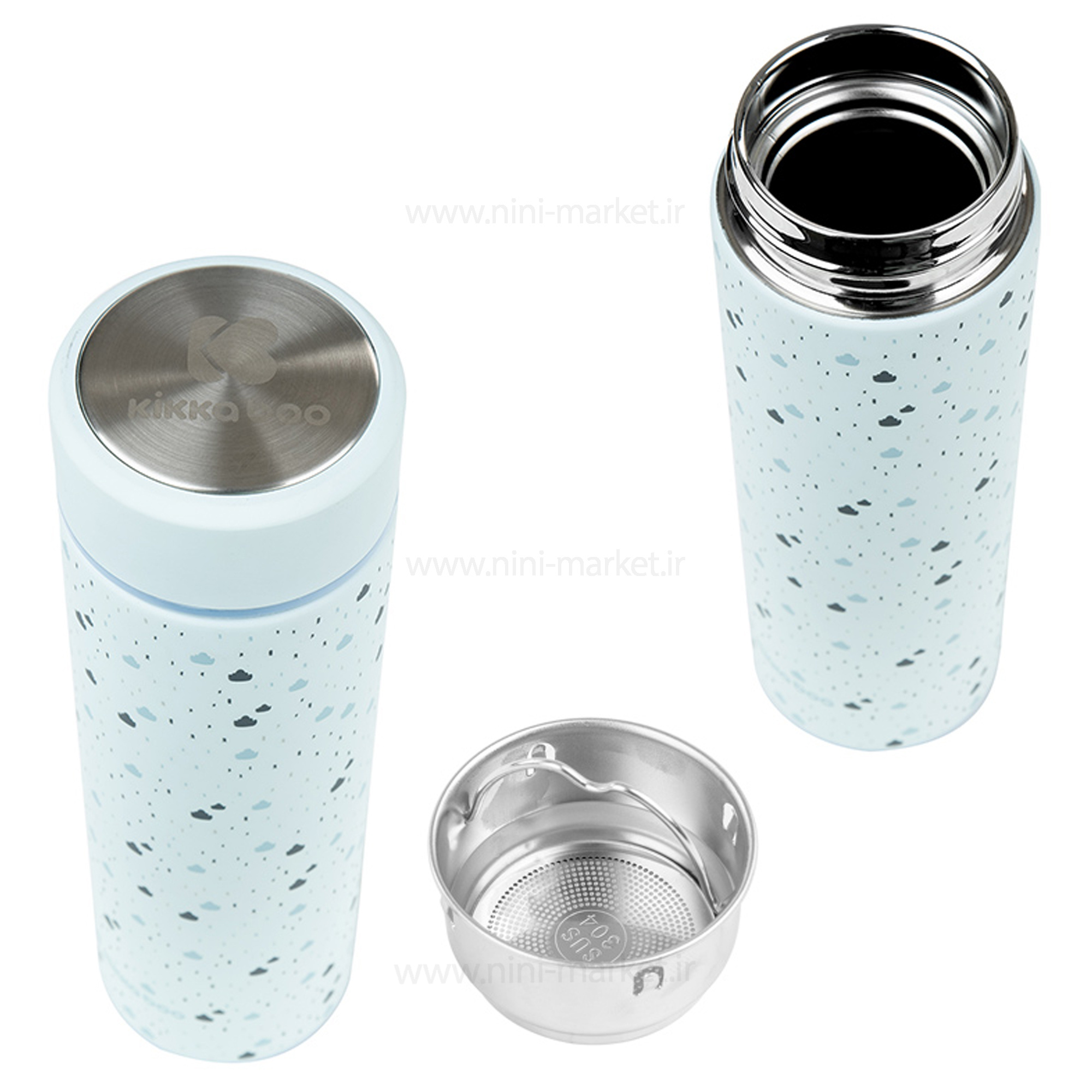 فلاسک از جمله لوازم ضروری است که همیشه مورداستفاده قرار میگیرد. مدت زمانی که یک فلاسک دمای آب و مایعات را ثابت نگه میدارد، از اهمیت بسیار بالایی برخوردار است. فلاسک آب ۵۰۰ میل لوکس رنگ آبی کیکابو Kikaboo نهایتاً تا ۱۲ ساعت دما را گرم نگه میدارد و دمای مایعات سرد را تا ۲۴ ساعت حفظ میکند. در صورت استفاده از فلاسک برای حمل چای، باتوجهبه توری فلزی داخل آن، دیگر دغدغهای بابت تفاله وجود نخواهد داشت. این فلاسک از فلز باکیفیت و ضدزنگ ساخته شده است و همچنین دارای طراحی بسیار زیبایی است بر جذابیت این فلاسک افزوده است.
