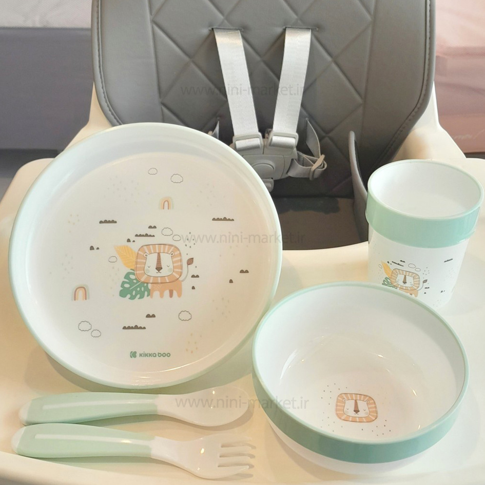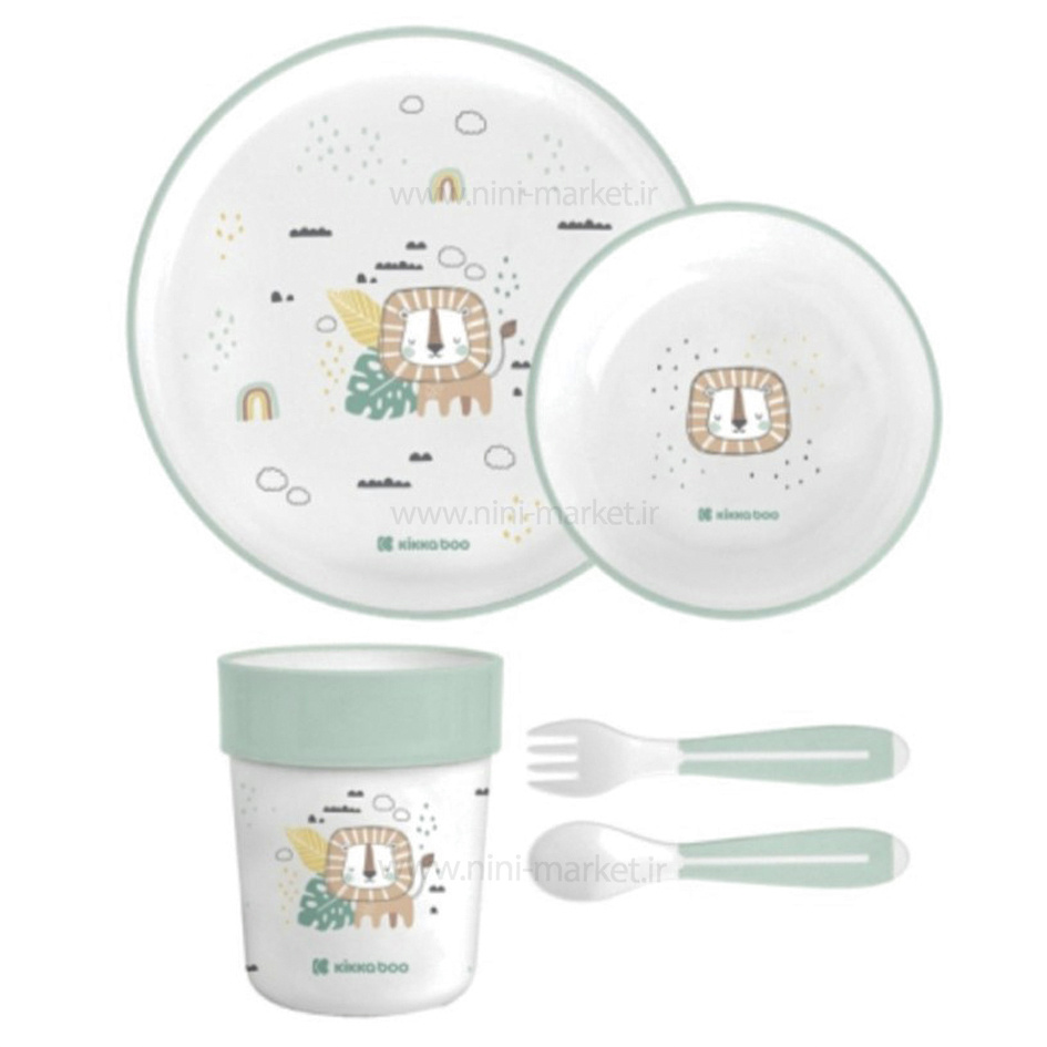 ظرف غذا 5 تیکه ملامین طرح شیر رنگ سبز kikkaboo