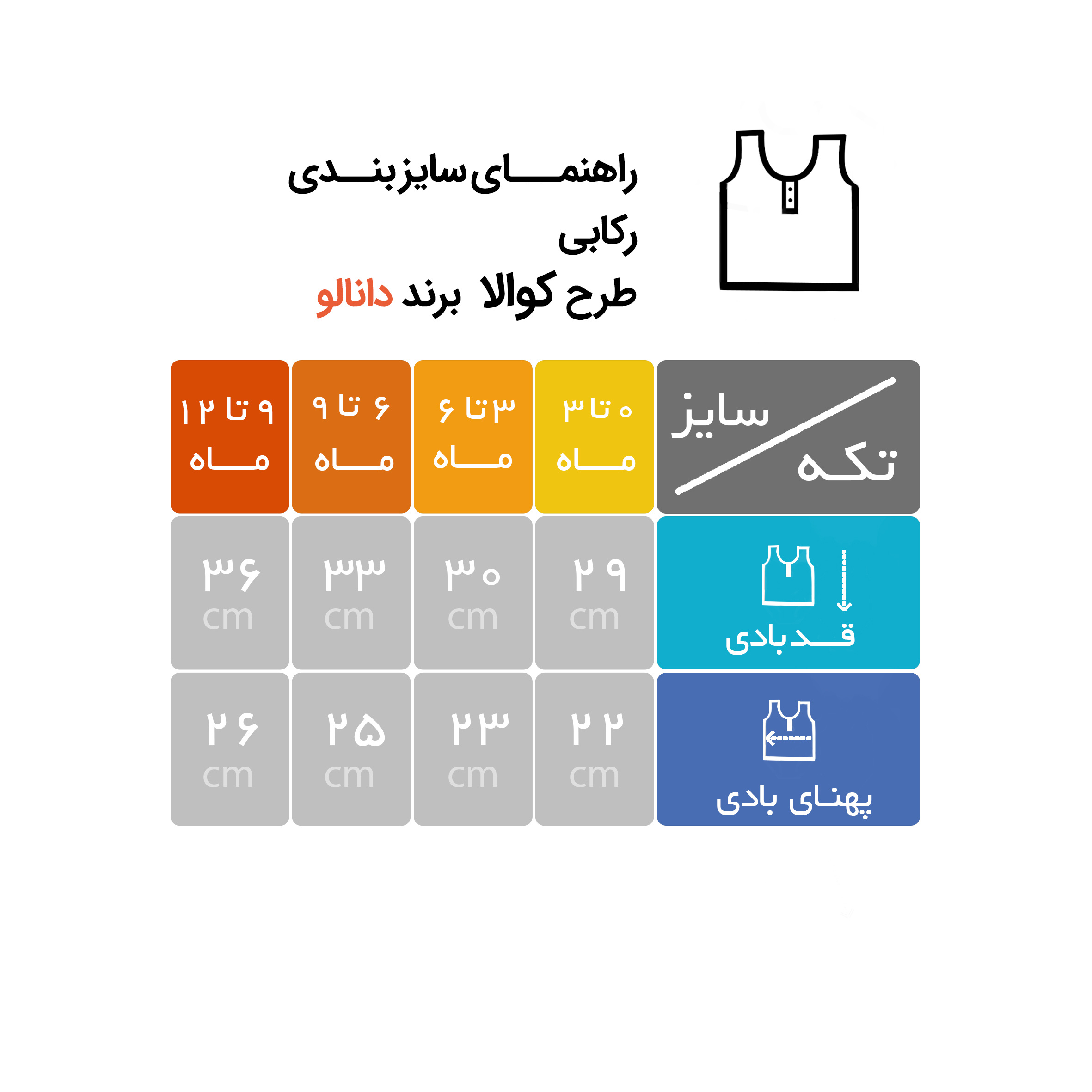 این مجموعه از برند دانالو دارای لباسهای چند تکه میباشد که جنس آنها از سوپر نخ بوده و در دوختن این لباسها از الیافهای طبیعی،رنگ ثابت و بسیار مرغوب استفاده شده است.رکابی طرح کوالا دانالو با طراحی بسیار زیبا و دوختی ظریف گزینه مناسبی برای فرزند دلبند شماست. روی سینه این لباس طرح یک کولای بهصورت تکدوزی و گلدوزی درآمد است. سه دکمه زیر لباس تعبیه شده است که استفاده از آن را برای مادران آسان کرده است.