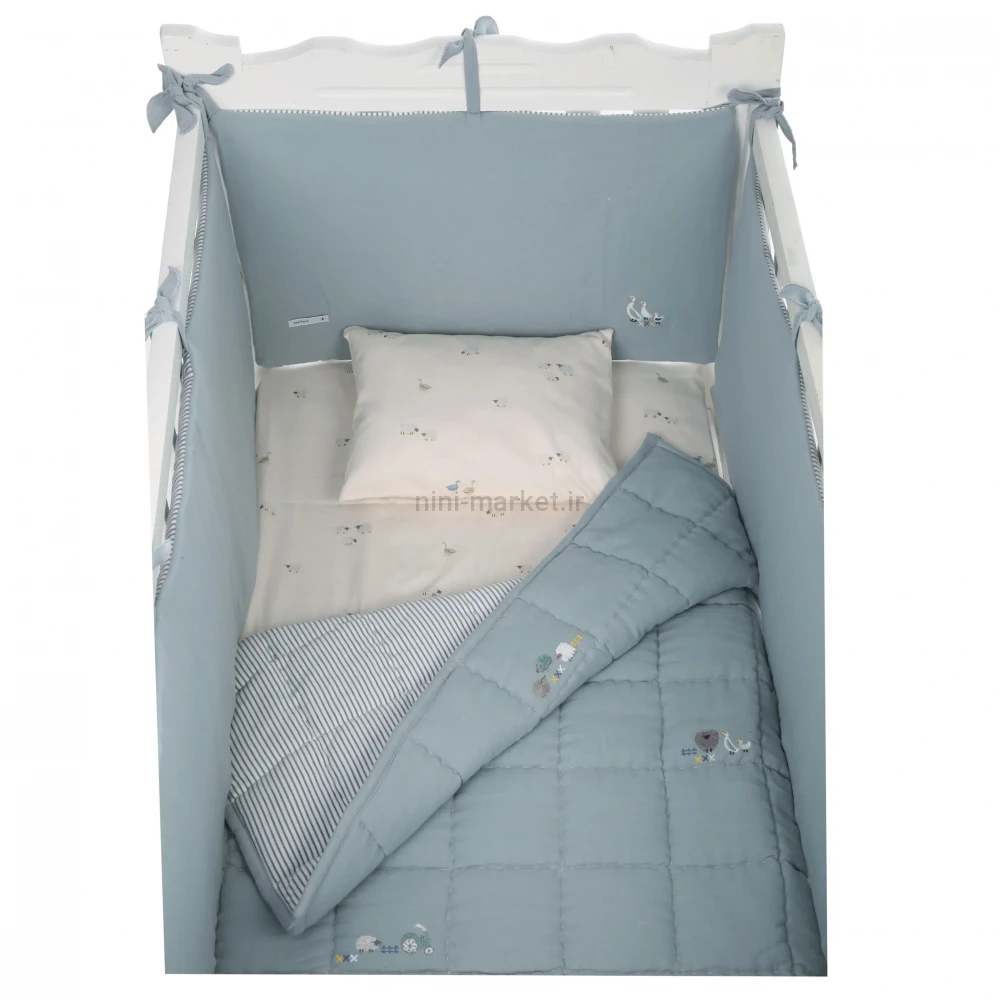 خرید ست روتختي 8 تيکه طرح مرغابي پارچه موسلين رنگ کله غازي ايسيز Isiz