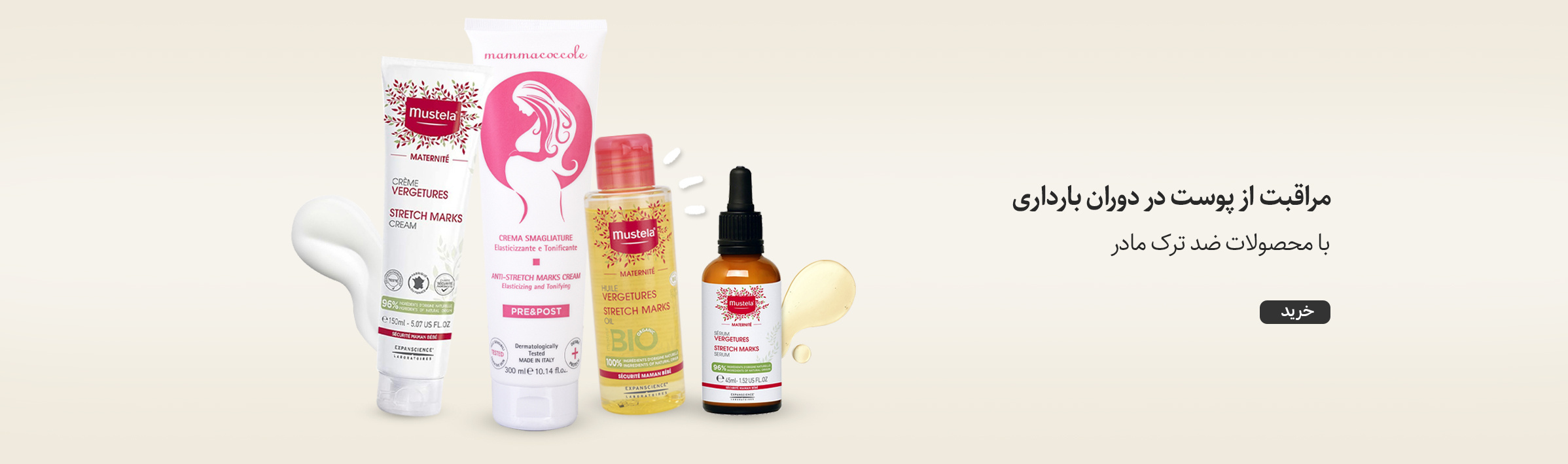محصولات ترک شکم: این کرمها و روغنها با افزایش رطوبت و تقویت الاستیسیته پوست، از ایجاد ترکهای پوستی در دوران بارداری جلوگیری میکنند. استفاده منظم از این محصولات باعث حفظ سلامت پوست، کاهش التهاب و نرم نگه داشتن پوست شکم، سینه و باسن میشود.